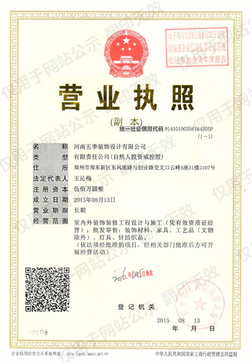 版權所有:河南五季裝飾設計有限公司 豫ICP備19016103號-1  營業執照信息公示